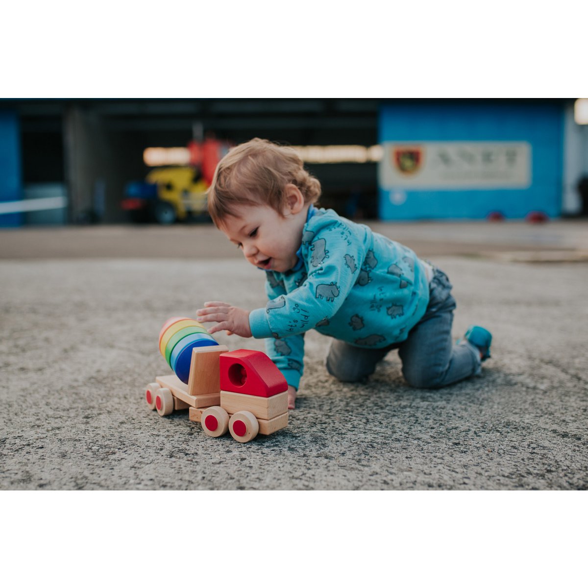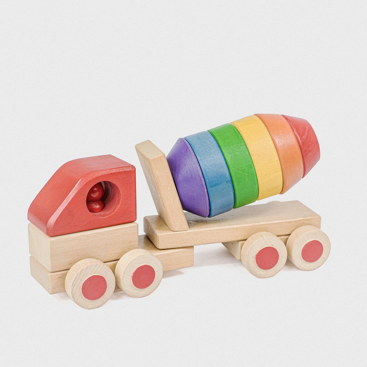 Denne ultra fine håndlavet beton blander / cement blander er lavet som et fint samlesæt. Der er en lastbil med sættevogn i farverige smukke farver. Barnet kan selv samle og sammensætte, som de synes. Her testes både legen, fantasien og finmotorikken. Det er ikke “kun” et legetøj på hjul, men også et legetøj hvor hånd-øje koordinering og koncentration udvikles.