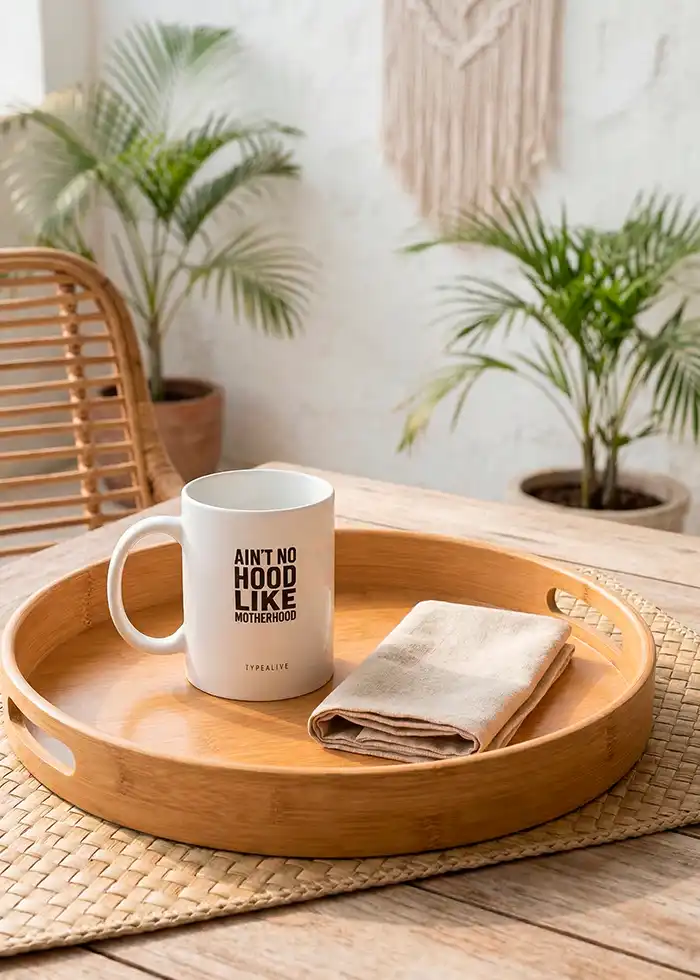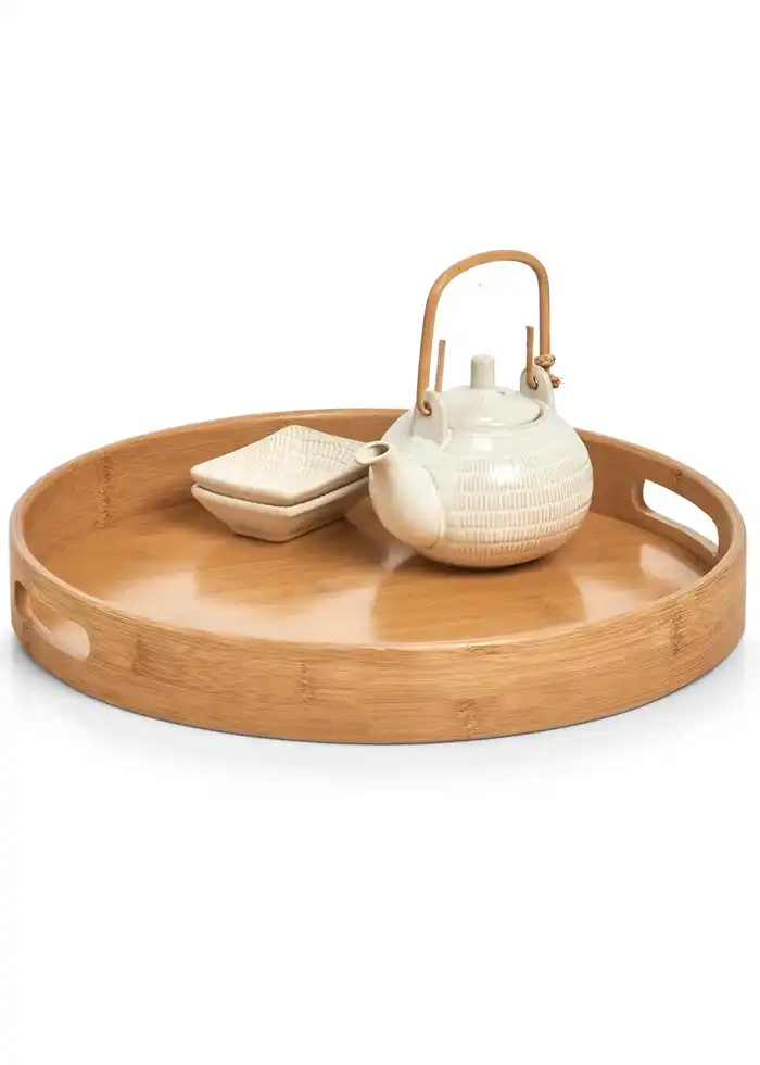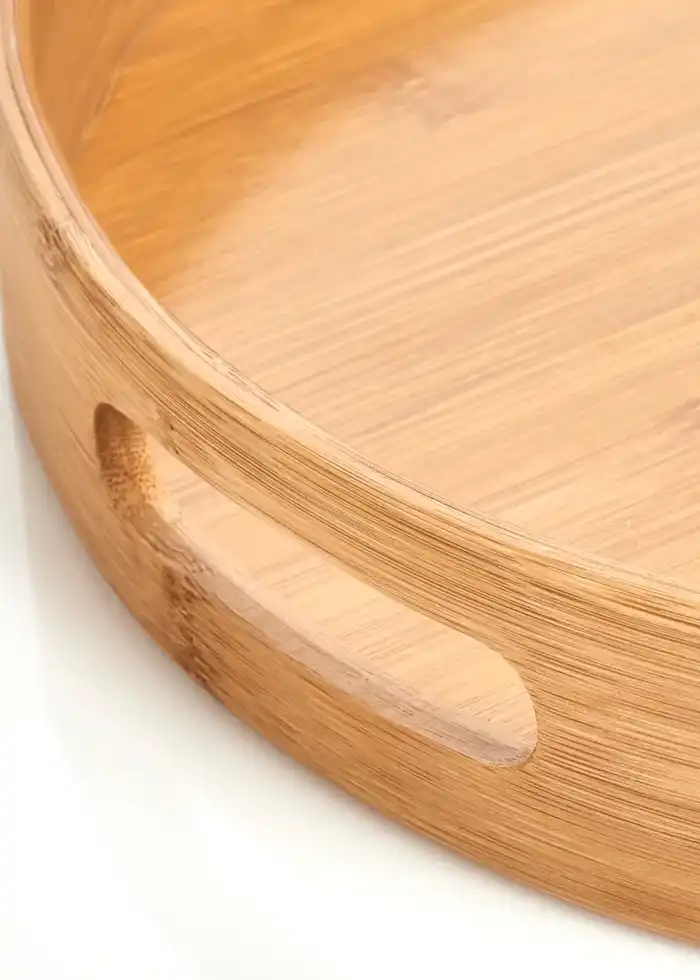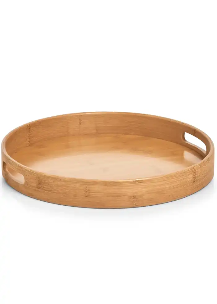 Denne runde serveringsbakke i bambus er skabt til de små øjeblikke i hverdagen. Til morgenmad på terrassen, eftermiddagskaffe i stuen eller når der skal bæres saftevand og snacks ind til sofaen. Den forhøjede kant og de praktiske greb i siden gør den nem og tryg at bære – også når små hænder gerne vil hjælpe til. Det naturlige bambus giver et varmt og roligt udtryk, som passer fint ind i et hjem, hvor funktion og stemning gerne må følges ad. En enkel og praktisk bakke, der gør det lidt lettere at samle og dele hverdagens små stunder.